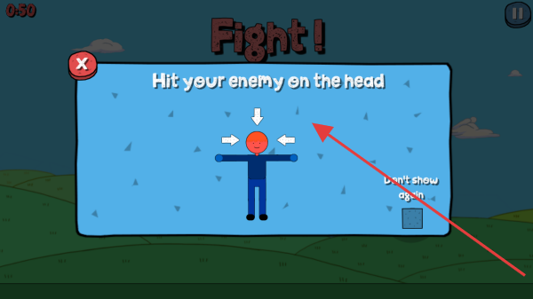 3、战斗中,看到提示【Hit your enemy on the head】,按箭头指示攻击敌人头部,在规定时间(【0:50】)内击败敌人,获取胜利。
