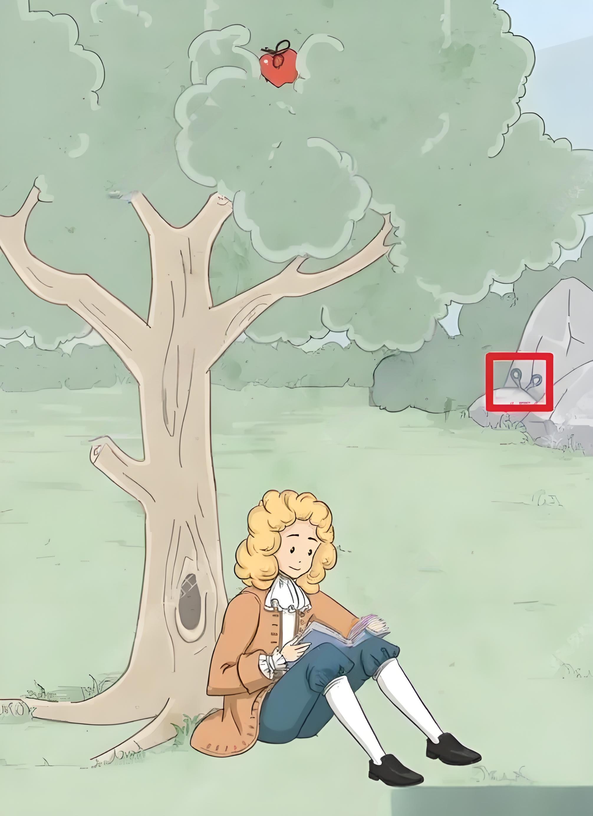 1、首先在场景当中找到剪刀,接着点击树上苹果下面的树枝草丛。