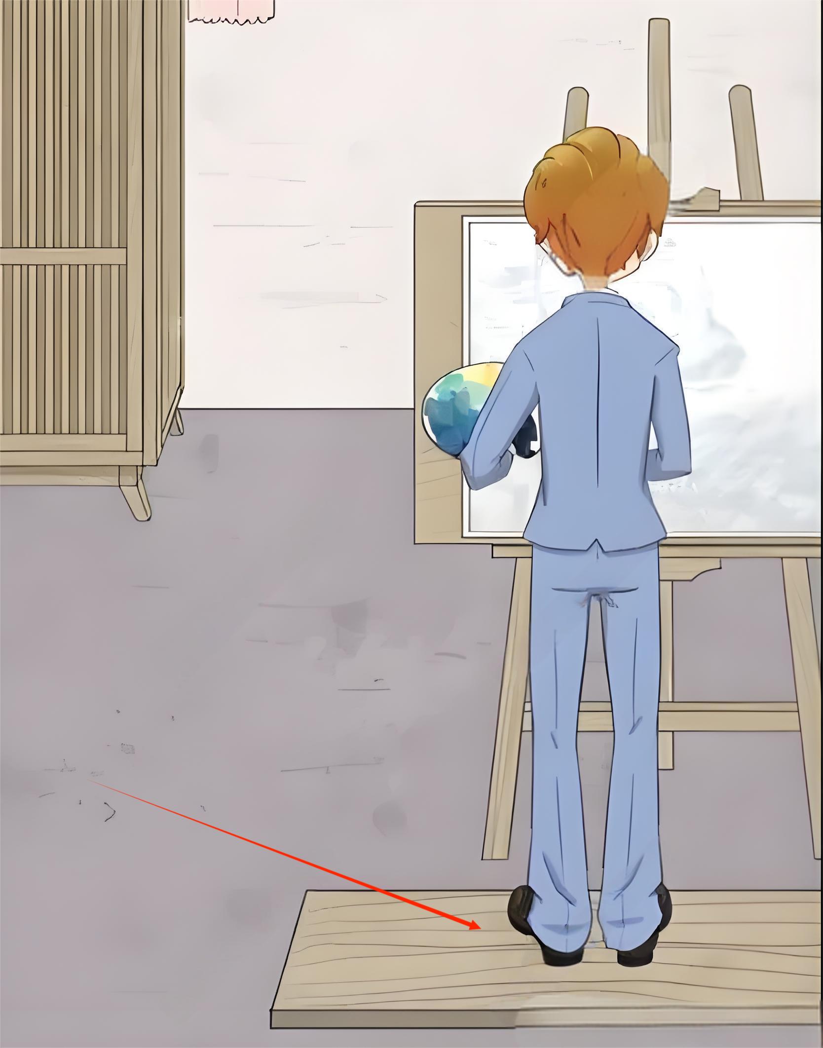 3、在这一关当中在柜子下面找到木板,之后使用这个木板给画家垫脚。