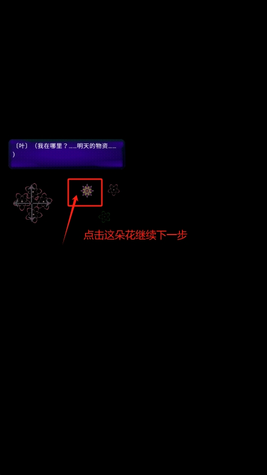 2、看到提示后,点击指定花朵,推动游戏剧情继续发展。