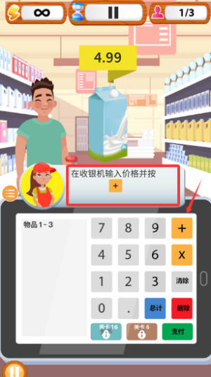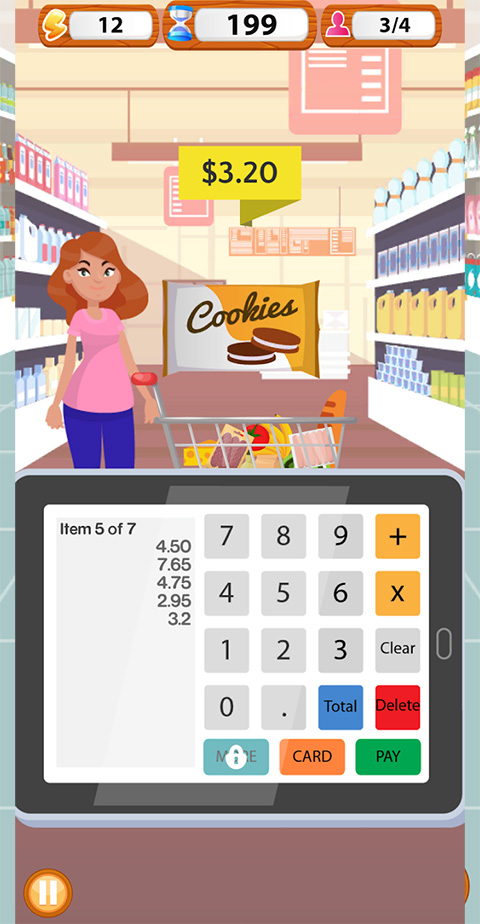 超市收银员模拟器最新版让你体验真实的收银工作,在杂货店里接待各式顾客,快速计算商品总价并准确找零,既能锻炼心算能力又能提升专注力,提供限时挑战与自由模式两种玩法,通过完成收银任务解锁新成就,在轻松愉快的氛围中掌握实用数学技能,享受数字带来的乐趣与成就感。