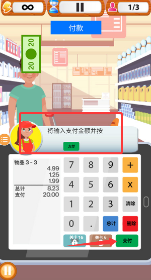 4、找零练习系统,针对不同面额货币设计找零训练,帮助玩家快速提升心算能力和货币识别速度。