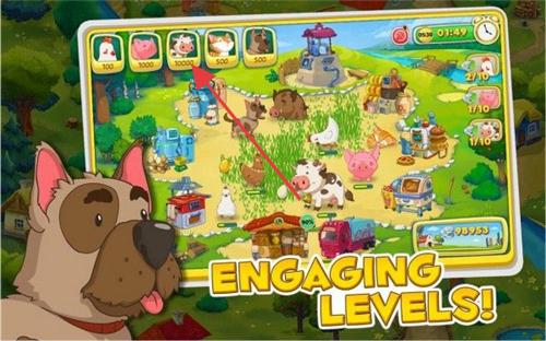 3、动物互动收益机制:每日抚摸、投喂动物提升亲密度,解锁「加速产奶」「自动耕地」等专属技能,如亲密度满值的奶牛产奶量翻倍,兔子帮忙播种胡萝卜。