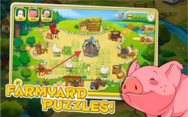 3、面对“FARMYARDPUZZLES!”相关内容,在农场场景中解决谜题,通过各种操作完成农场挑战。