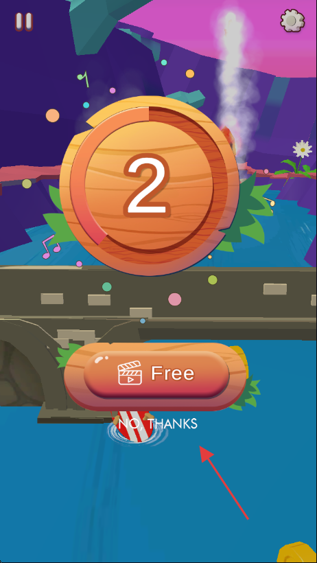 3、出现倒计时界面时,点击【NO THANKS】按钮跳过并继续游戏。