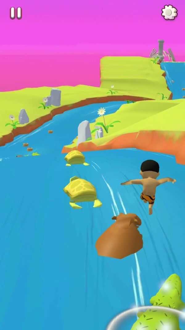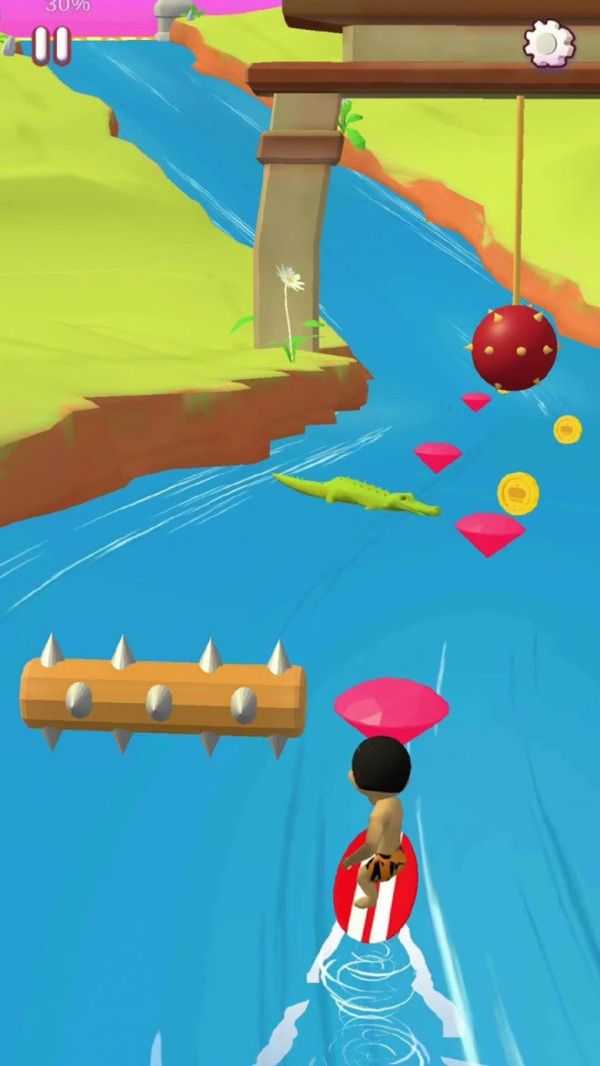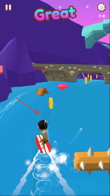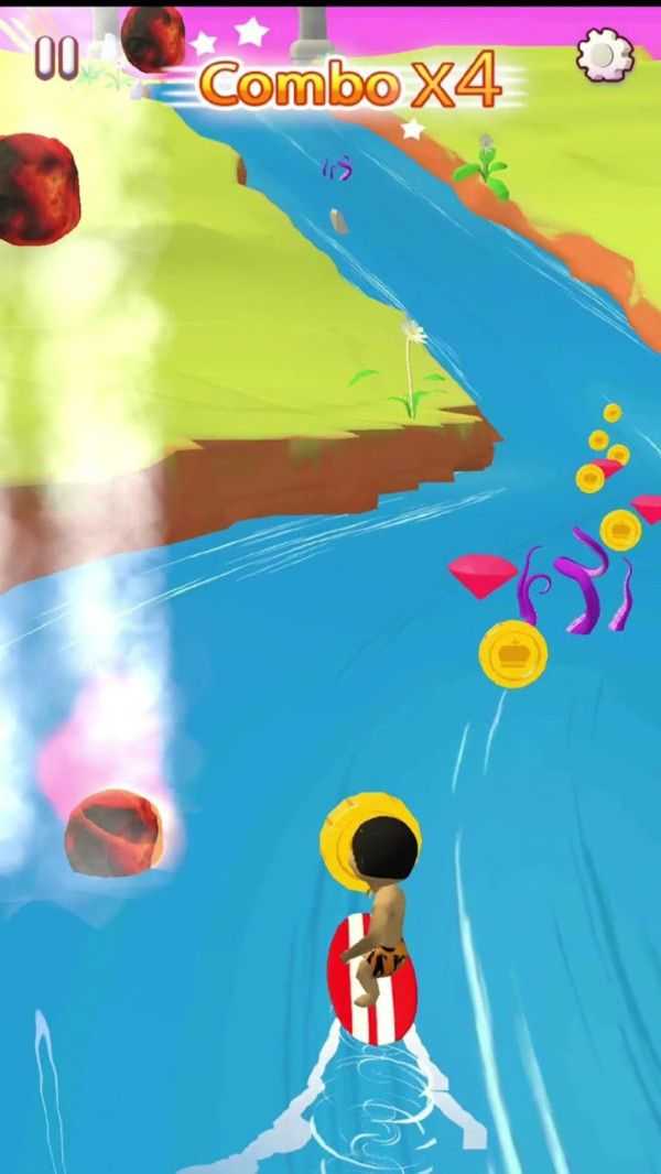 2、游戏中操控角色在水面滑行,收集金币并躲避前方障碍。.