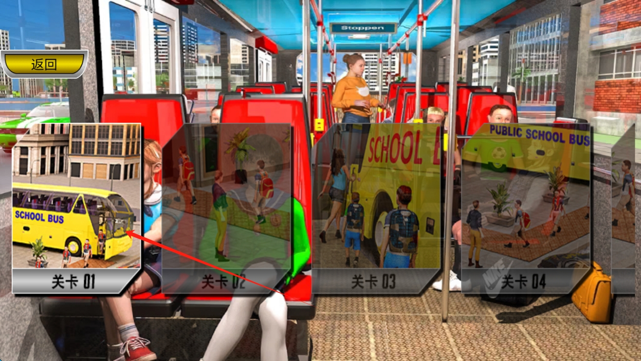 2、点击按钮选择关卡,大型车适合长距离运输,部分关卡隐藏额外乘客,需仔细观察环境,如路边招手的行人。