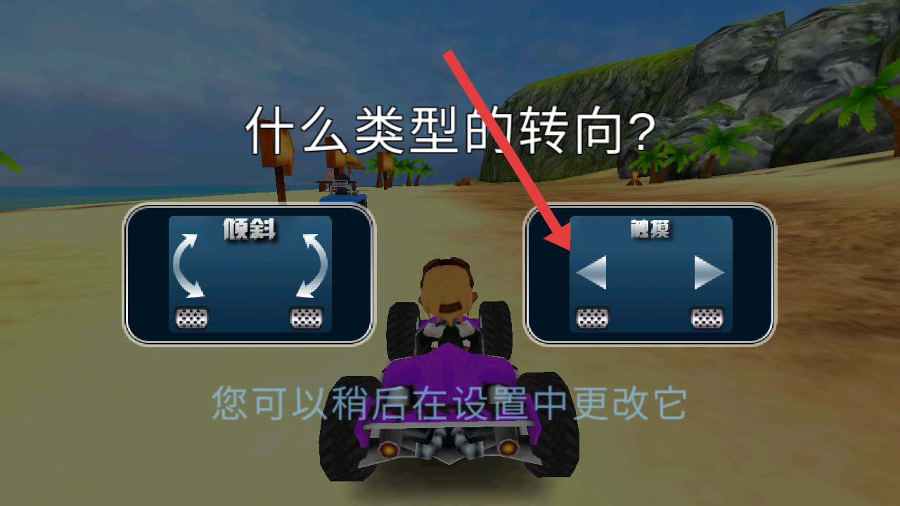 2、选择转向方式时,点击【触摸】选项,通过触摸操作来控制赛车转向,方便游戏进程。