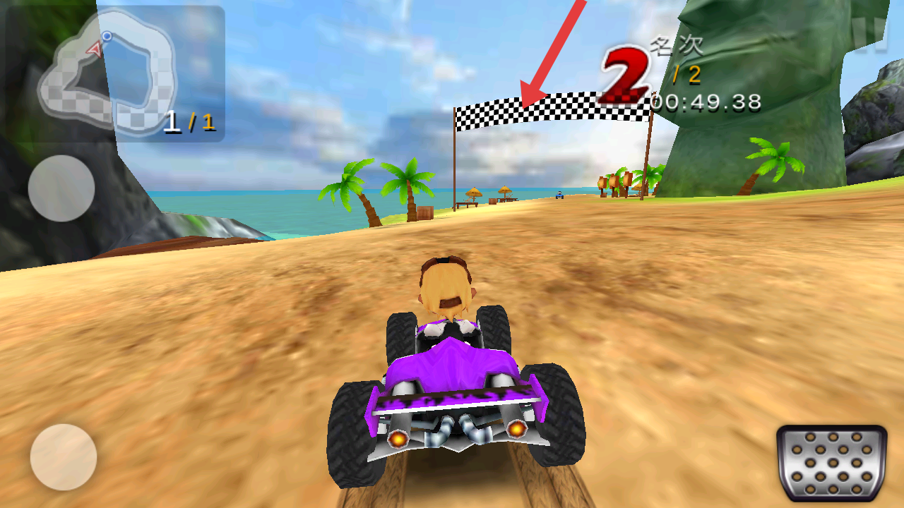 3、操控赛车冲向【终点线】完成比赛,图中显示名次与时间,努力争取更好成绩。