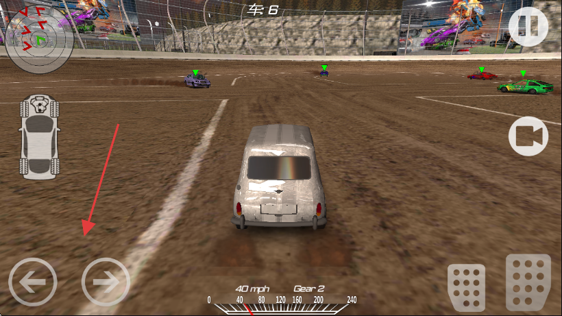 2、进入比赛后,通过左下角的左右箭头按钮操控车辆转向。