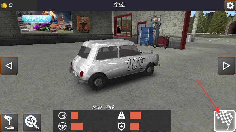 1、在车库界面中,点击右下角的方格旗按钮进入比赛。