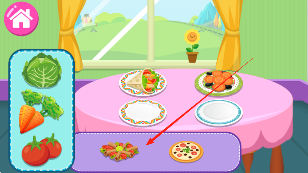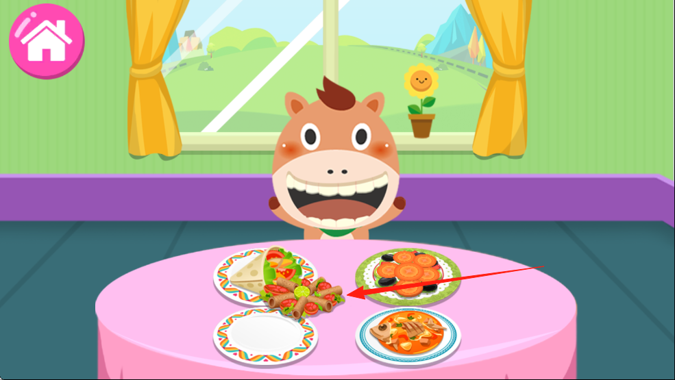 1、引导孩子进入游戏后先熟悉界面,通过点击探索各种食物,了解不同食物的名称和外观特征。