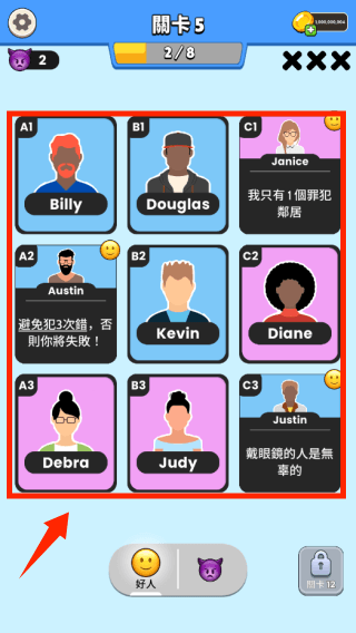 1、逻辑推理玩法在众多游戏中独具优势,通过收集线索和分辨发言来找出罪犯,玩家进入游戏后,先熟悉关卡场景与人物设定。