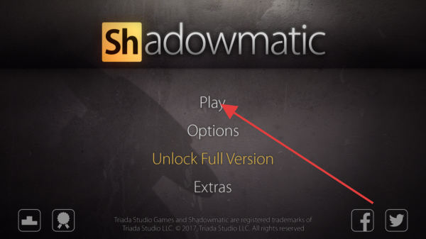 1、打开《Shadowmatic》游戏,点击【Play】进入游戏,可按需选择【Options】调整设置,或【Unlock Full Version】解锁完整版。