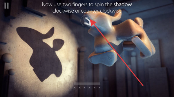 3、掌握单指操作后,依据提示【Now use two fingers to spin the shadow clockwise or counter-clockwise】,双指顺时针或逆时针旋转影子,完成关卡挑战。