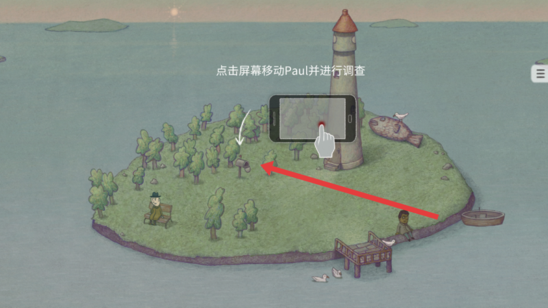 1、进入游戏后跟随教程, 点击屏幕移动Paul并进行调查。
