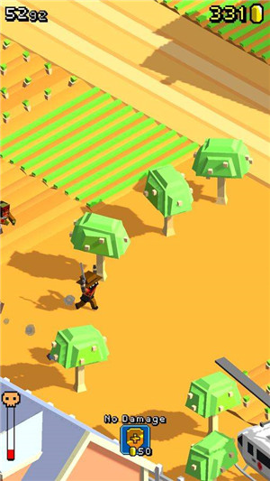 2、场景互动元素:场景中的部分方块建筑、障碍物可被破坏,如推倒木箱阻拦丧尸,击碎墙壁开辟新路线,增加跑酷策略多样性。