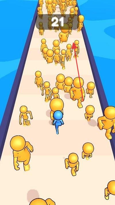 2、游戏中道路上有大量黄色小人,玩家需操控蓝色小人突破黄色人群的阻挡,规划前进路线。