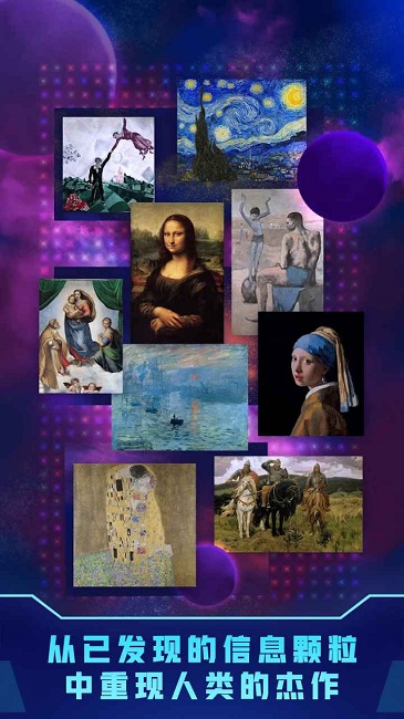 2、科幻艺术叙事体系:以人类文明复兴为线索,每幅复原画作附带背景故事,在解谜中解锁星际探索与艺术史交织的宏大剧情。