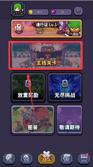 1、进入游戏,将发现多种丰富的玩法内容,以主线关卡作为起点,开启全新的冒险之旅。