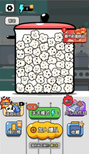 爆个爆米花带来轻松趣味的消除体验,创意玩法让人耳目一新。游戏采用经典点击消除机制,通过匹配相同造型的爆米花完成关卡挑战。数百个精心设计的关卡难度循序渐进,从简单入门到烧脑挑战应有尽有。色彩鲜艳的爆米花造型搭配清脆音效,营造愉悦的游戏氛围。特殊道具助力突破复杂局面,连击消除触发炫酷特效。