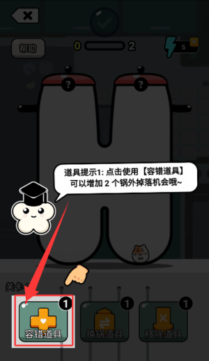 1、登录游戏进入界面点击新手指导有温馨提示,点击使用容错道具可掉落机会哦。