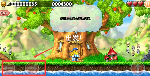 3、利用屏幕上的左右方向键来控制杰克的移动。