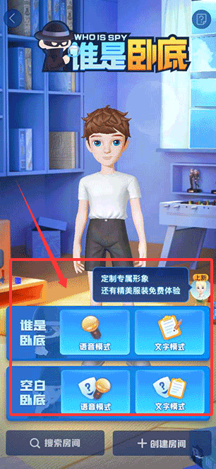 2、点击谁是卧底进入游戏,可以选择语音模式或者文字模式。