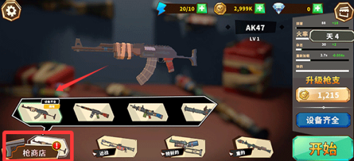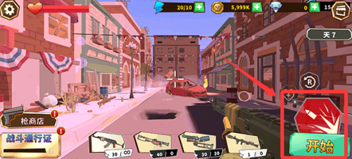 3、遇到僵尸,点击右下角射击,中间可以切换枪支。