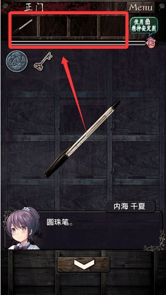 2、经过一段漫长的对话之后,先点击正门的柜子,在第二个格子中获得圆珠笔。