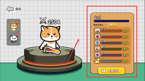 3、这是您的辅助伙伴,也可以通过点击属性点通关体验等等都是需要用到的哈。