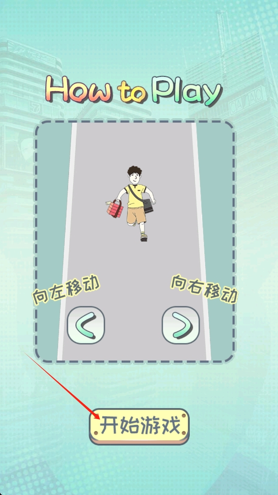 1、点击开始游戏按钮,进入游戏,通过点击向左移动向右移动按钮操控角色。