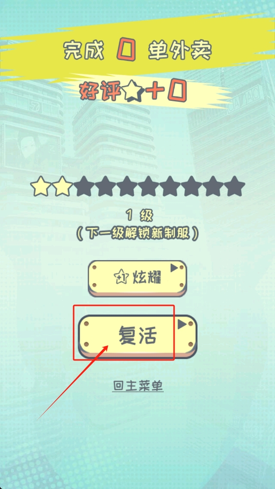3、任务失败后,可点击复活按钮重新开始,继续完成外卖订单获取好评。
