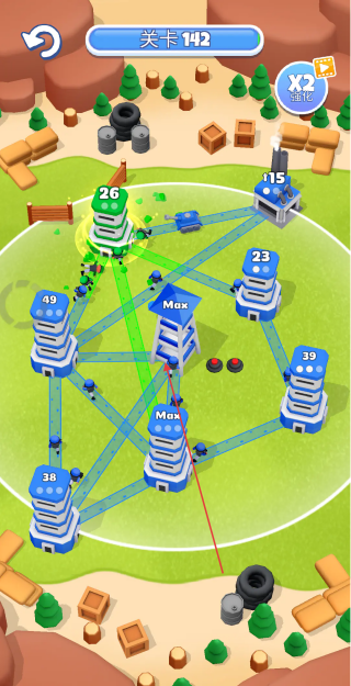 连接塔楼聚焦策略布局的实时战争游戏,在错综复杂的地图中化身指挥官,通过连接己方塔楼构建出兵路线,精准规划进攻路径攻占敌方地盘,以智慧与策略完成地区统一,体验从零散势力到庞大帝国的崛起历程,以清新明快的画风呈现立体塔楼与动态战场。