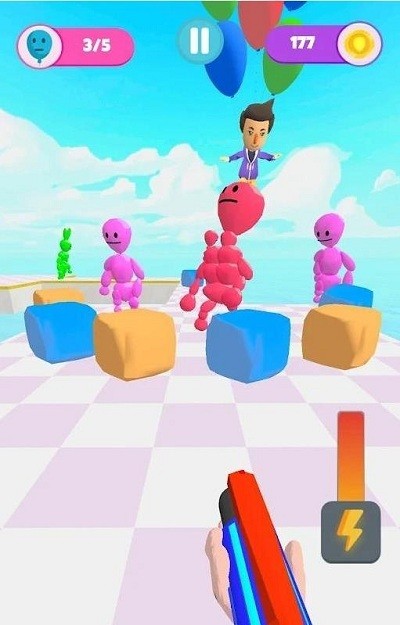 3、限时挑战玩法:部分关卡设有时间限制,需在规定时间内消灭指定数量气球人,合理规划射击顺序,提高通关效率。