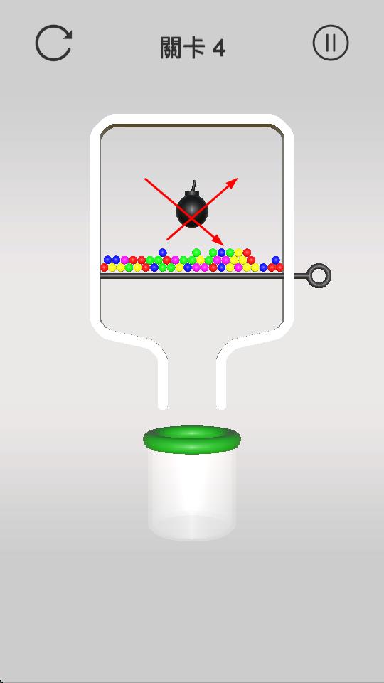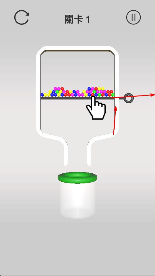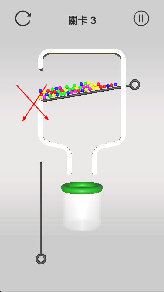 1、游戏设有关卡,玩家需在不同关卡场景中,通过观察和思考,找到让彩色小球落入下方容器的方法。