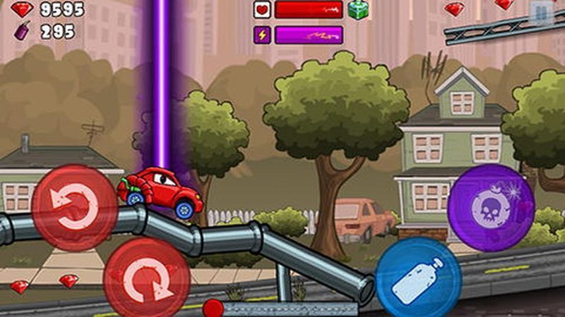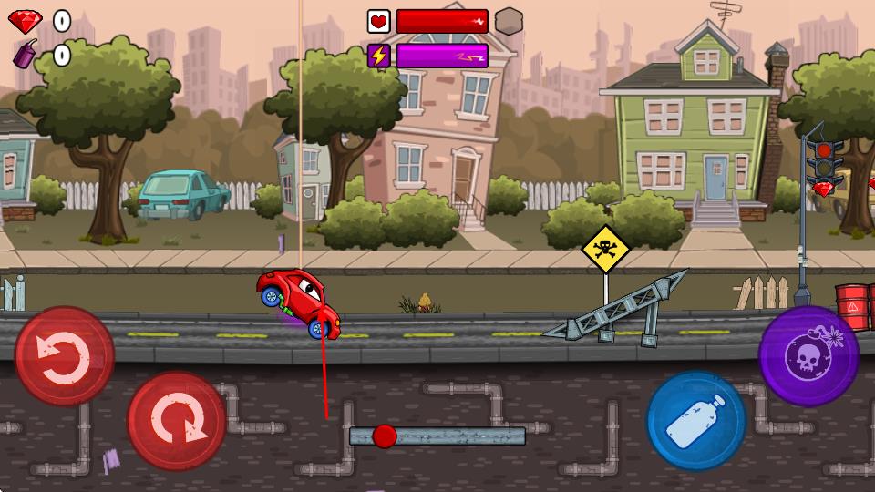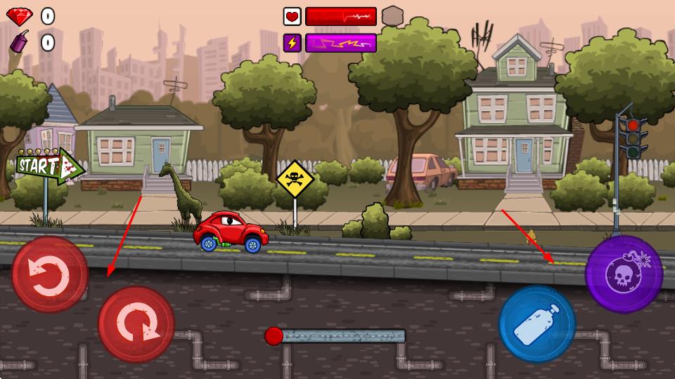 2、行驶中途需紧盯路况,左右滑动屏幕躲避尖刺、沟壑等障碍,同时加速逼近对手车辆,找准时机撞击其侧面或尾部,使其失控冲出赛道。