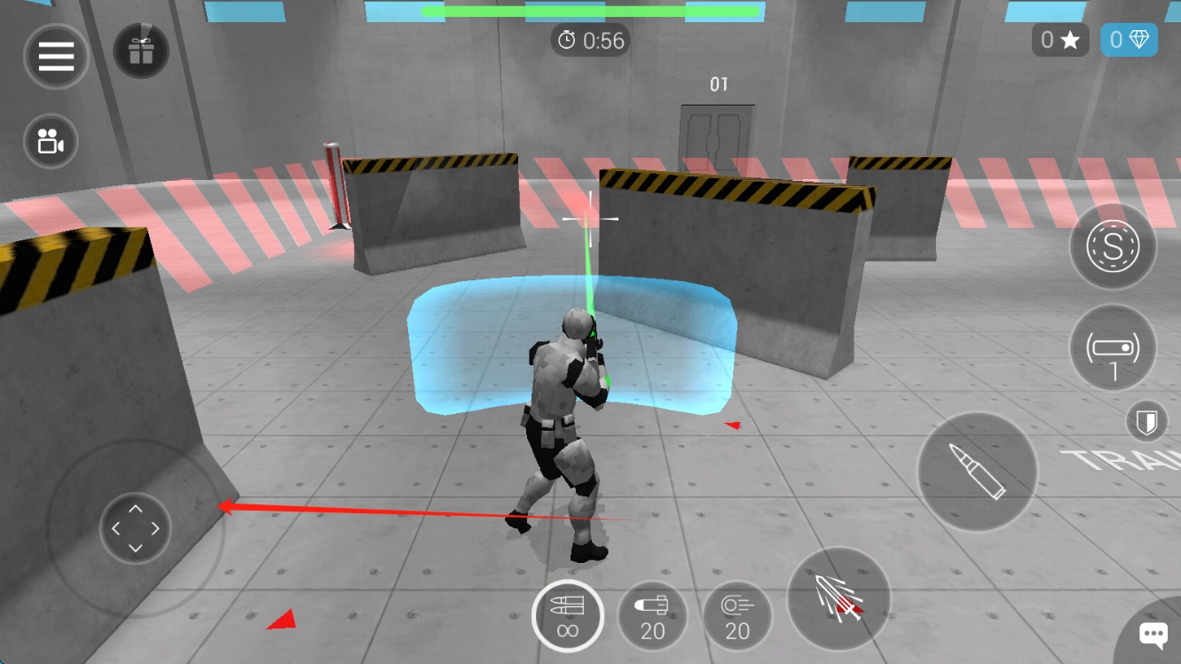 3、成长系统:通过完成任务与击杀敌人获得经验值提升等级,解锁新武器与技能,使用信用点购买基础升级,钻石可购买高级武器与加速升级,支持观看广告免费获取随机资源。