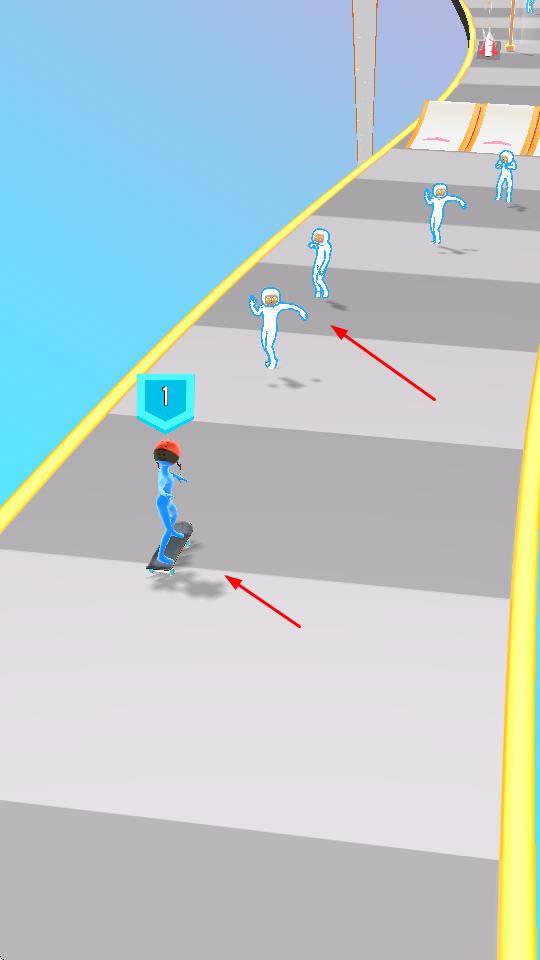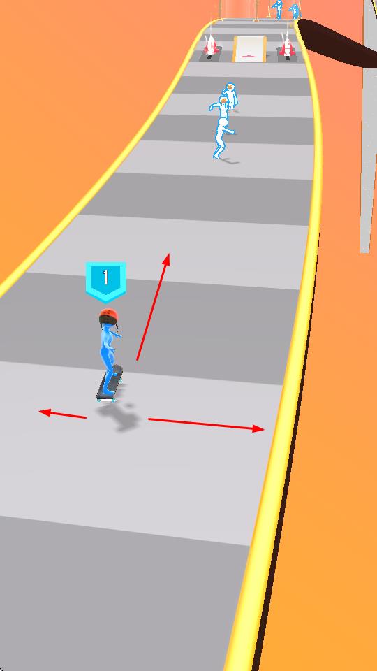 1、玩家操控戴红色头盔的蓝色小人在道路上前进,通过操作控制角色移动方向,在不同场景中穿梭。