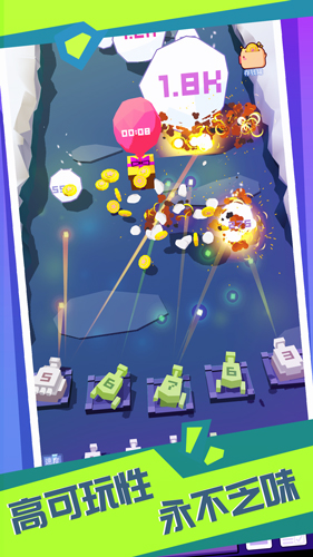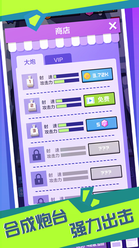 3、社交分享激励:支持分享战绩至社交平台,与好友比拼段位进度与炮台合成速度,排行榜系统激发竞争欲,增添社交互动乐趣。