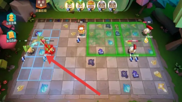 2、在战场布局界面拖动英雄图标至指定位置,完成阵型部署后点击开始按钮触发战斗。