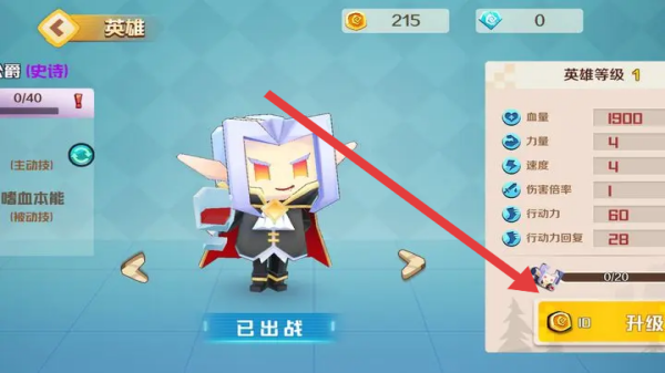 3、战斗结束后进入升级界面,点击英雄头像旁的升级按钮,消耗金币提升英雄能力。