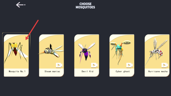 1、在选择蚊子界面,点击【MosquitoNo.1】卡片,选定该蚊子角色进入游戏。