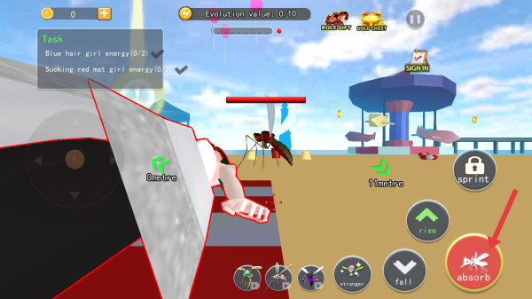 2、等级养成系统:通过吸血积累经验升级,解锁更高级蚊虫与技能,如抗拍打护盾、快速吸血加速等,提升生存与任务效率。