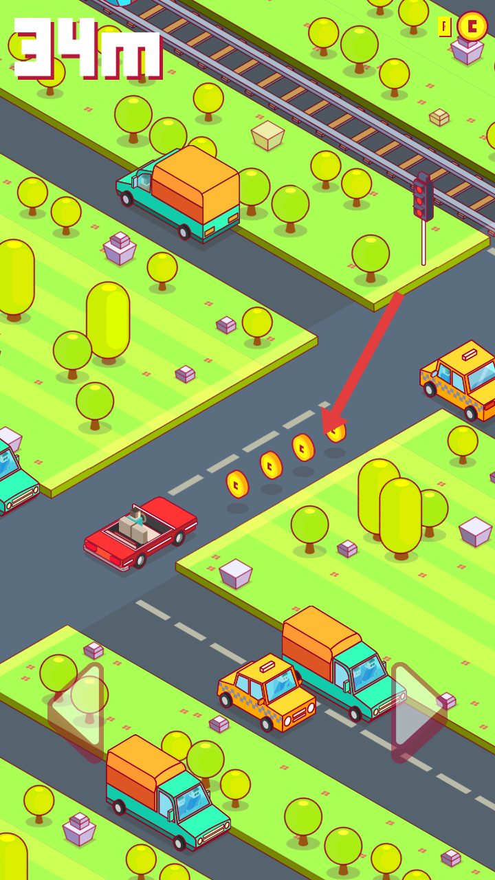 3、注意道路上的金币,按箭头指引收集【金币】,这是游戏内的重要收集元素,增加游戏收益。