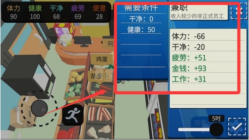 2、平衡金钱与健康是游戏的核心难点,疲劳过度或资源不足都可能导致游戏中断,使生活规划更具挑战性与成就感。