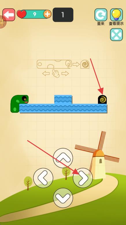 2、闯关过程中,遇到复杂障碍时,思考如何利用关卡中的道具和砖块,规划小虫子的移动路线,帮助它避开危险继续前进。