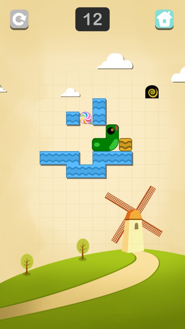 1、基础移动:通过手指点击屏幕指定位置,控制小虫子在平面上移动,避开墙壁等障碍物,寻找通往糖果的路线。