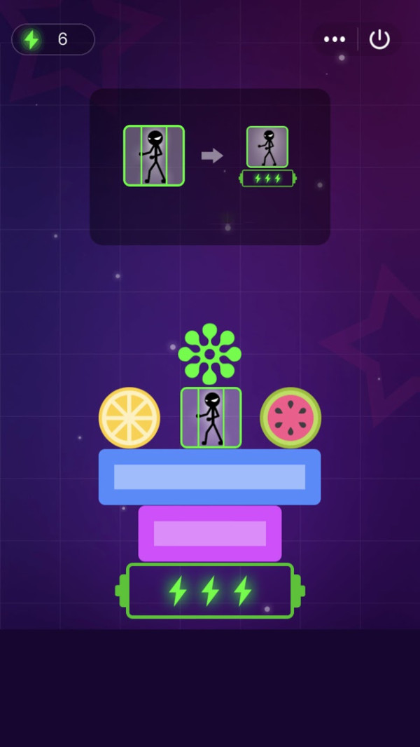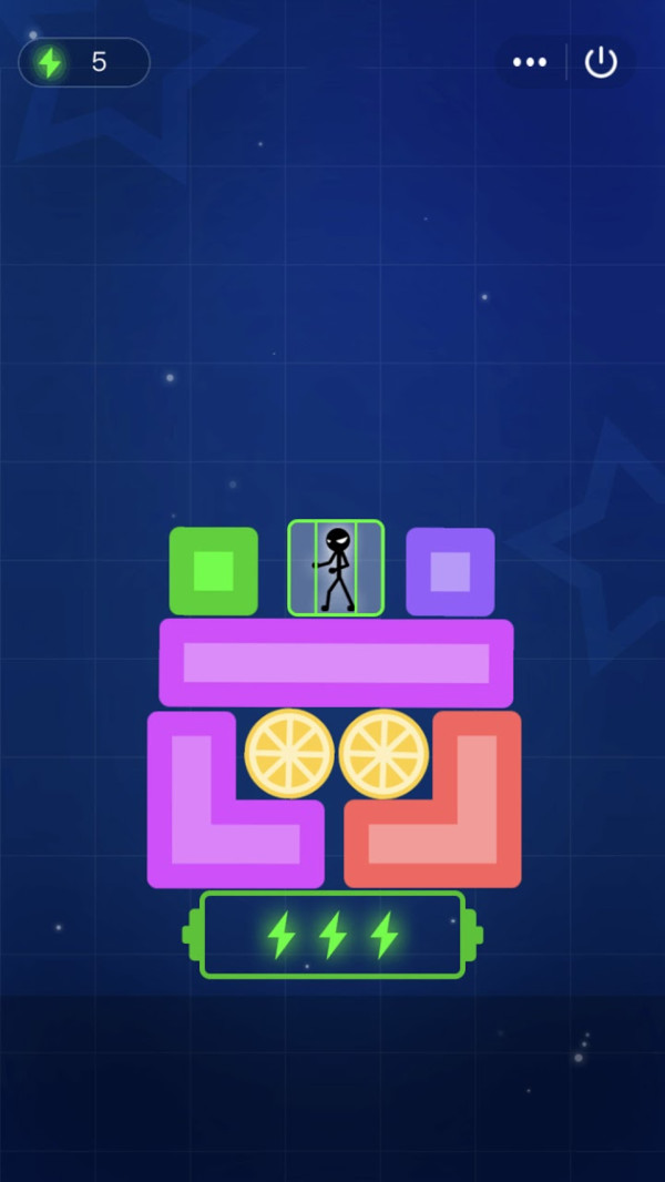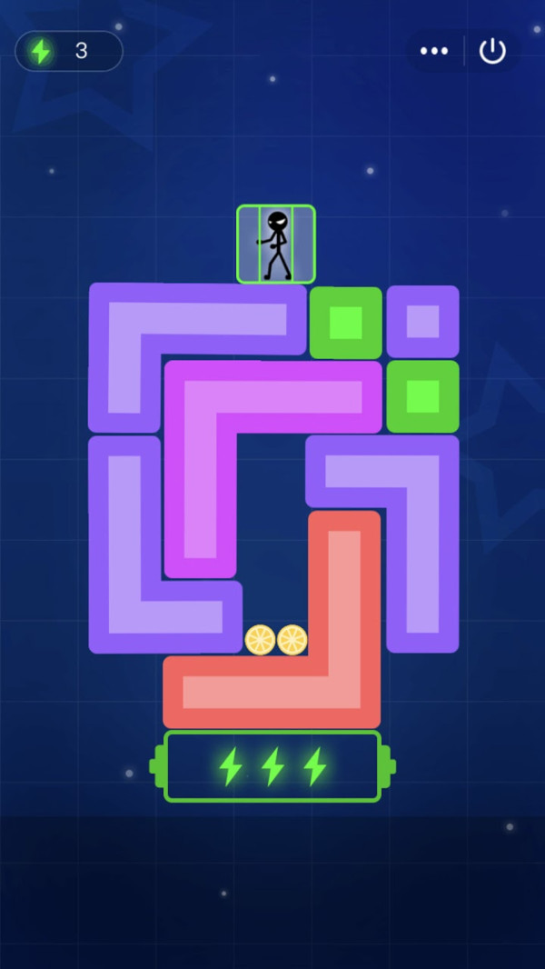 3、目标是将火柴人安全引导至带有绿色闪电标志的区域,完成能量补充或通关任务,面对复杂关卡,合理利用能量值进行关键移动,精准规划每一步,成功通过关卡。