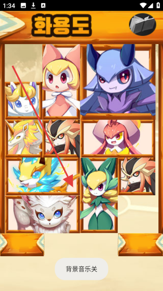 2、在精灵选择界面,按箭头指示挑选心仪精灵,观察精灵形象和特点,选择合适的精灵组建队伍,可按需关闭【背景音乐】。